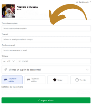 Además, seguido de esto encontrarás un botón para poder inscribirte, ahí te aparecerá el método de pago disponible en tu país y solo tienes que seguir los pasos, por favor no olvides de colocar bien tu correo ya que allí te llegará el acceso a la formación